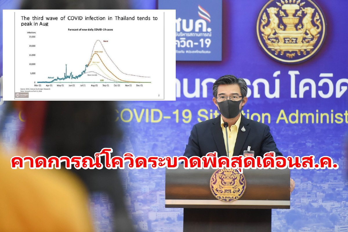 ศบค.เผยข้อมูลคาดการณ์โควิดระบาดในไทย ชี้เดือนส.ค.ยอดติดเชื้ออาจสูงกว่า 15,000 รายต่อวัน และเริ่มลดลงในช่วงส.ค.-ก.ย.64