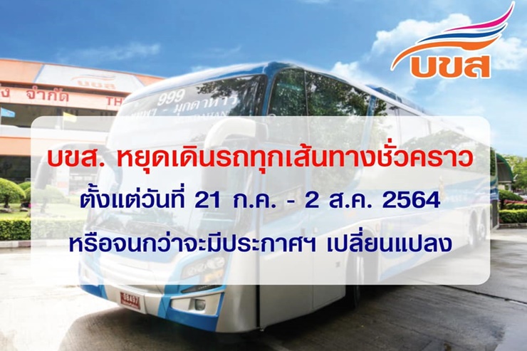 ดร.สัญลักข์ ปัญวัฒนลิขิต กรรมการผู้จัดการใหญ่ บริษัท ขนส่ง จำกัด (บขส.) เปิดเผยว่า จากสถานการณ์การแพร่ระบาดของโรคติดเชื้อไวรัสโคโรนา 2019 (โควิด-19) ที่มีความรุนแรงเพิ่มขึ้นอย่างต่อเนื่อง ส่งผลให้รัฐบาลต้องเพิ่มมาตรการป้องกันการแพร่ระบาดขั้นสูงสุด อีกทั้งเพื่อให้เป็นไปตามข้อกำหนด ออกตามความในมาตรา 9 แห่งพระราชกำหนดการบริหารราชการในสถานการณ์ฉุกเฉิน พ.ศ. 2548 (ฉบับที่ 28) ลงวันที่ 17 กรกฎาคม 2564ที่ขอความร่วมมือประชาชนงดหรือชะลอการเดินทางข้ามเขตพื้นที่จังหวัดที่ไม่มีเหตุจำเป็น เพื่อควบคุมสถานการณ์การแพร่ระบาดฯ ดังกล่าว บขส. จึงขอแจ้งหยุดให้บริการเดินรถเส้นทางภาคเหนือ ภาคตะวันออกเฉียงเหนือและภาคตะวันออก และภาคใต้ ทุกเส้นทางชั่วคราว ตั้งแต่วันที่ 21 กรกฎาคม – 2 สิงหาคม 2564 หรือจนกว่าจะมีประกาศคำสั่งเปลี่ยนแปลง ทั้งนี้ผู้โดยสาร บขส. ที่ซื้อตั๋วล่วงหน้าเดินทางระหว่างวันที่ 21 กรกฎาคม - 2 สิงหาคม 2564 สามารถติดต่อขอคืนตั๋ว หรือเลื่อนการเดินทางได้ จนถึงสิ้นปี 2564 ณ ช่องจำหน่ายตั๋วของ บขส. ทั่วประเทศ ส่วนผู้โดยสารที่ใช้สิทธิ์บัตรสวัสดิการแห่งรัฐ ไม่สามารถขอคืนเงินค่าตั๋วได้ แต่สามารถแจ้งเลื่อนการเดินทางได้ ทั้งนี้เงื่อนไขเป็นไปตามที่บริษัทฯ กำหนด สอบถามข้อมูลเพิ่มเติมโทร Call Center 1490 เรียก บขส. ตลอด 24 ชั่วโมง