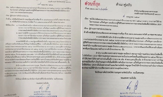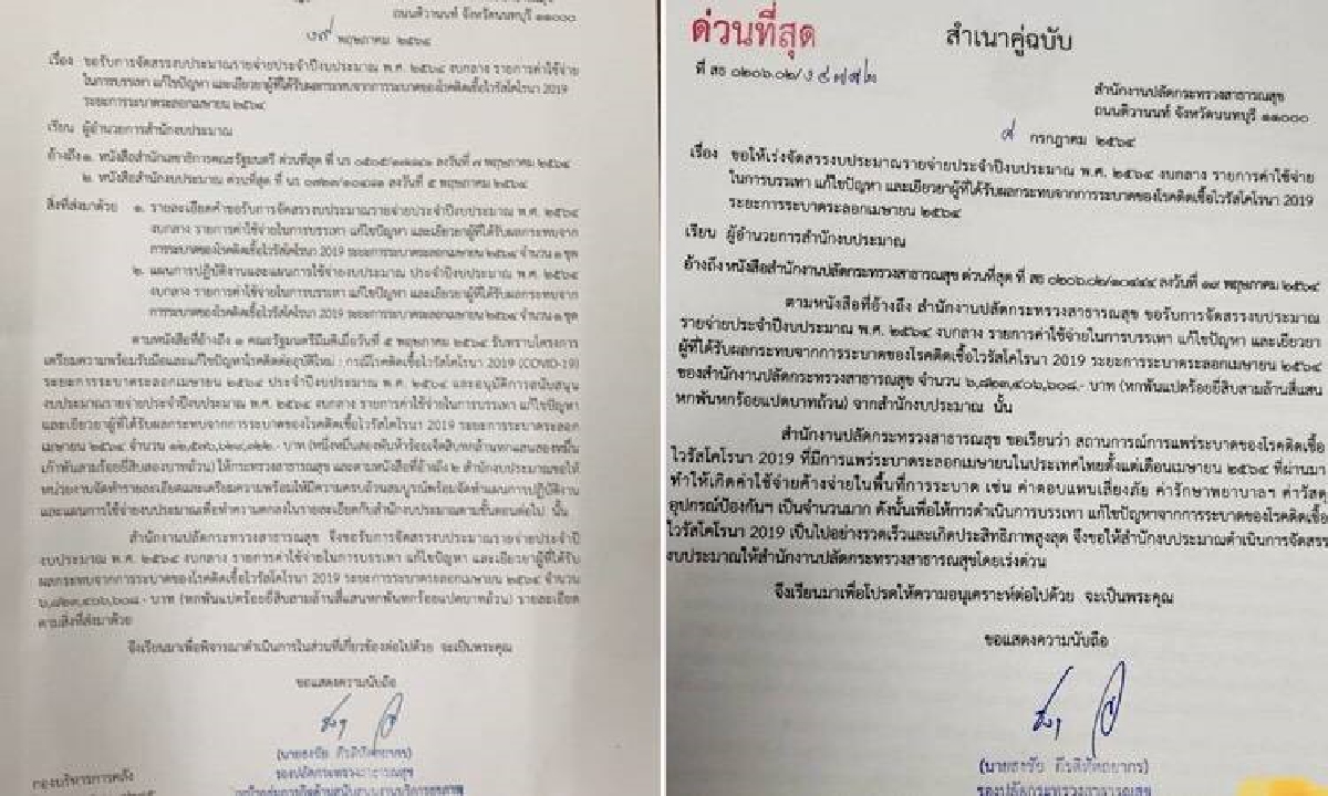 ผู้สื่อข่าวรายงานว่า กระทรวงสาธารณสุข ได้มีการทำ หนังสือด่วนที่สุด เลขที่ สธ 0206.02 /10444 ลงวันที่ 19 พ.ค. 2564 ลงนามโดย นพ.ธงชัย กีรติหัตถยากร รองปลัดกระทรวงสาธารณสุข หัวหน้ากลุ่มภารกิจด้านสนับสนุนงานบริการสุขภาพ ปฏิบัติราชการแทนปลัดกระทรวงสาธารณสุข เรื่อง ขอรับการจัดสรรงบประมาณรายจ่ายประจำปีงบประมาณ พ.ศ. 2564 งบกลาง รายการค่าใช้จ่ายในการบรรเทา แก้ไขปัญหา และเยียวยาผู้ที่ได้รับผลกระพบจาการระบาดของโรคโควิด 19 ส่งถึง ผอ.สำนักงบประมาณ โดยอ้างถึง 1.หนังสือสำนักเลขาธิการคณะรัฐมนตรี ด่วนที่สุด ที่ นร 0505 /17841 ลงวันที่ 7 พ.ค.2564 และ 2.หนังสือลำนักงบประมาณ ด่วนที่สุด ที่ นร 0723/10481 ลงวันที่ 4 พ.ค.2564