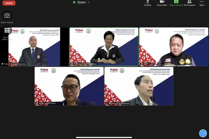 นอกจากนี้อสส. ยังได้ลงนามร่วมกับ วิทยาลัยเทคโนโลยีสยามบริหารธุรกิจ (SBAC) โดย ดร.ปราศรัย ประวัติรุ่งเรือง ผู้อำนวยการวิทยาลัยเทคโนโลยีสยามบริหารธุรกิจ (SBAC สะพานใหม่) และดร.ประสาน ประวัติรุ่งเรือง ผู้อำนวยการวิทยาลัยเทคโนโลยีสยามบริหารธุรกิจ (SBAC นนทบุรี) ร่วมลงนามในบันทึกข้อตกลงทางวิชาการและวิชาชีพเพื่อการจัดการศึกษาด้านอาชีวศึกษา ผ่านระบบ Zoom โดยมี รศ.ดร. วรสัณฑ์ บูรณากาญจน์ กรรมการองค์การสวนสัตว์แห่งประเทศไทย และ ประธานอนุกรรมการด้านการตลาดผ่านสื่อสังคมออนไลน์ ร่วมเป็นเกียรติในพิธี