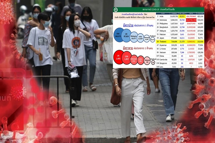 โควิดไทยพุ่งอันดับ 39โลก ติดเชื้อใหม่ 21,379 เจออีก 5 คลัสเตอร์ใหม่