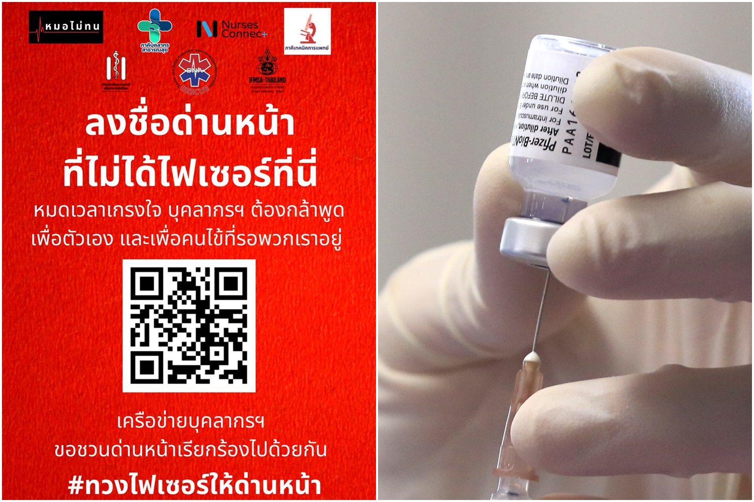 เครือข่ายบุคลากรทางการแพทย์ประกาศชวน บุคลากรด่านหน้าที่ไม่ได้ไฟเซอร์ ร่วมลงชื่อเรียกร้อง 4 ข้อต่อกระทรวงสาธารณสุข จี้จัดสรรไฟเซอร์บุคลากรการแพทย์ด่านหน้าทุกคน และเปิดเผยเกณฑ์การจัดสรรให้แต่ละพื้นที่