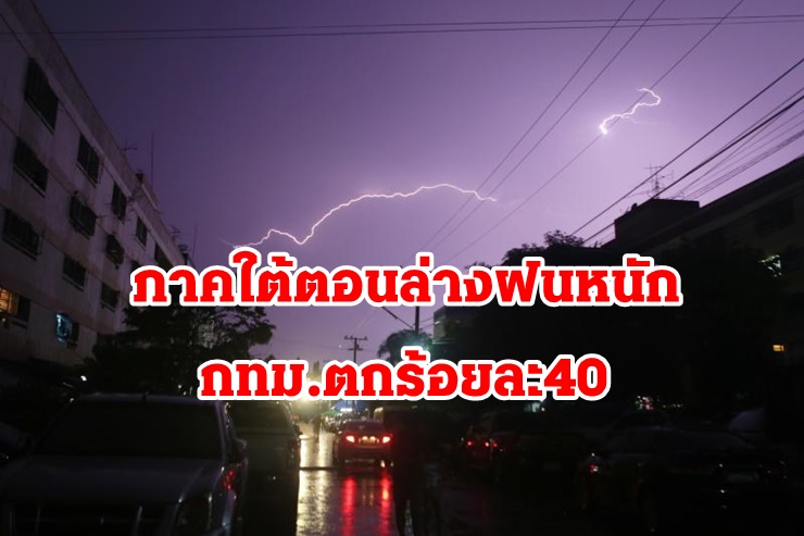 กรมอุตุฯ เผยไทยตอนบน มีฝนบางแห่ง เตือน 8 จังหวัดภาคใต้ตอนล่าง ตกหนัก กทม.ปริมณฑล ฟ้าคะนอง ร้อยะ 40