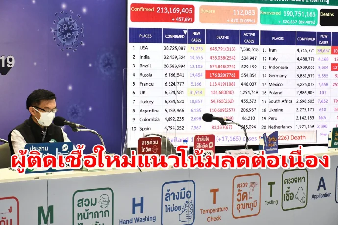 สธ.เผยแนวโน้มผู้ติดเชื้อโควิดรายใหม่ลดลงต่อเนื่อง