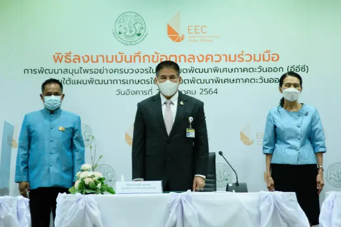 เมื่อวันที่ 24 ส.ค.ที่สำนักงานการปฏิรูปที่ดินเพื่อเกษตรกรรม ร.อ.ธรรมนัส พรหมเผ่า รมช.เกษตรและสหกรณ์ เปิดเผยภายหลังเป็นประธานและสักขีพยาน พิธีลงนามบันทึกข้อตกลงความร่วมมือการพัฒนาสมุนไพรอย่างครบวงจร ในพื้นที่เขตพัฒนาพิเศษภาคตะวันออก (อีอีซี) ว่า โครงการดังกล่าวอยู่ภายใต้แผนพัฒนาการเกษตรในพื้นที่เขตพัฒนาพิเศษภาคตะวันออก ระหว่าง สำนักงานการปฏิรูปที่ดินเพื่อเกษตรกรรม (ส.ป.ก.)และสำนักงานคณะกรรมการนโยบายเขตพัฒนาพิเศษภาคตะวันออก (สกพอ.) กระทรวงเกษตรและสหกรณ์นั้น ได้เล็งเห็นถึงความสำคัญ และความจำเป็นในการพัฒนาพืชสมุนไพรไทย ทางสำนักงานการปฏิรูปที่ดินเพื่อเกษตรกรรม (ส.ป.ก.) และทางสำนักงานคณะกรรมการนโยบายเขตพัฒนาพิเศษภาคตะวันออก (สกพอ.) จึงร่วมกันส่งเสริม สนับสนุน และพัฒนาสมุนไพรไทย ตลอดจนกิจการที่เกี่ยวเนื่องกับสมุนไพรไทยอย่างครบวงจรในเขตปฏิรูปที่ดินเพื่อเกษตรกรรมในพื้นที่ EEC โดยจะร่วมกันพัฒนาตั้งแต่การเพาะปลูก การเก็บเกี่ยว การแปรรูป การจัดการ ไปจนถึงด้านการตลาด ด้วยการนำเทคโนโลยีและนวัตกรรมสมัยใหม่มาใช้ เพื่อให้ได้วัตถุดิบและผลิตภัณฑ์ที่มีคุณภาพมาตรฐานระดับสากล สร้างรายได้ให้กับเกษตรกรในพื้นที่อีอีซีอย่างยั่งยืน