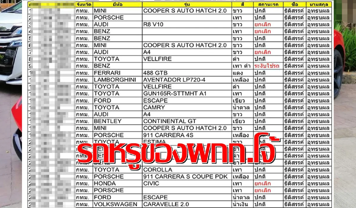 เผยเอกสารผู้กำกับโจ้ครอบครองรถหรูซูเปอร์คาร์กว่า 20 คันมีทั้ง MINI, PORSCHE, AUDI, BENS, FERRARI,LAMBORGHINI,BENTLEY ขณะที่กรมศุลกากรสั่งสอบที่มาของรถแล้ว