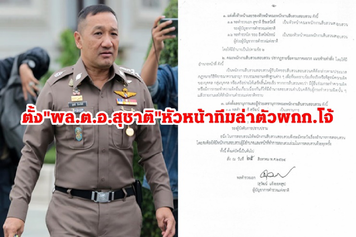 ผู้บัญชาการตำรวจแห่งชาติ ลงนาม ตั้ง คณะพนักงานสืบสวนสอบสวน คดี "ผกก.โจ้" -พวกซ้อมทรมานผู้ต้องหายาเสพติดรีดเงิน มี "พล.ต.อ.สุชาติ ธีระสวัสดิ์" เป็นหัวหน้าทีม