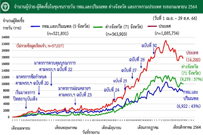 เมื่อวันที่ 29 ส.ค. 64 ศูนย์บริหารสถานการณ์โควิด-19 (ศบค.) รายงานสถานการณ์การแพร่ระบาดของไวรัสโควิด-19 ในประเทศประจำวัน ดังนี้