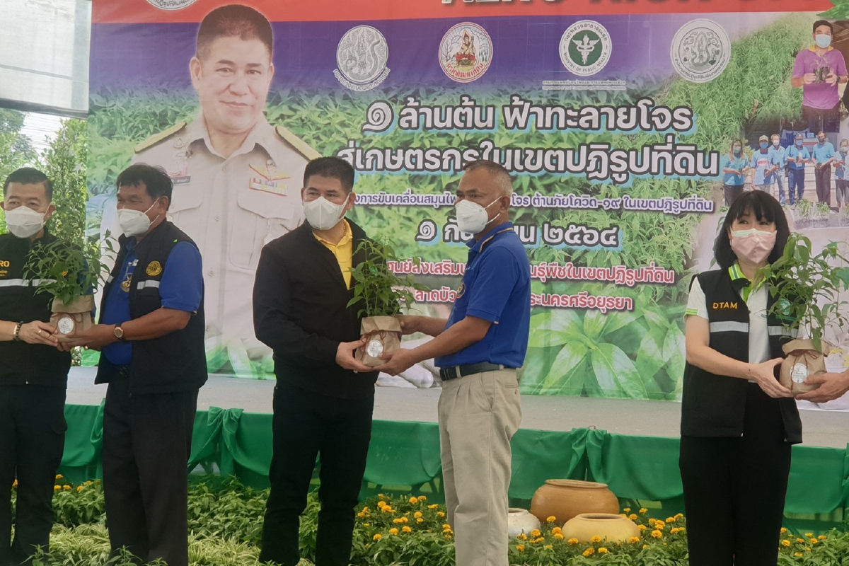 เมื่อวันที่ 1 ก.ย. 2564 ร.อ.ธรรมนัส พรหมเผ่า รมช.เกษตรและสหกรณ์ เป็นประธาน เปิดงาน “Kick Off ฟ้าทะลายโจร 1 ล้านต้น สู่เกษตรกรในเขตปฏิรูปที่ดิน” ณ ศูนย์ส่งเสริม และขยายพันธุ์พืชในเขตปฏิรูปที่ดิน ตำบลพระยาบันลือ อ.ลาดบัวหลวง จ.พระนครศรีอยุธยา
