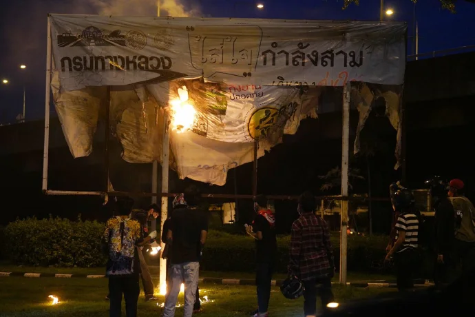 นอกจากนี้กลุ่มวัยรุ่นยังนำยางรถยนต์มาเผา และเผาป้ายไวนิลที่ติดอยู่บริเวณดังกล่าวด้วย