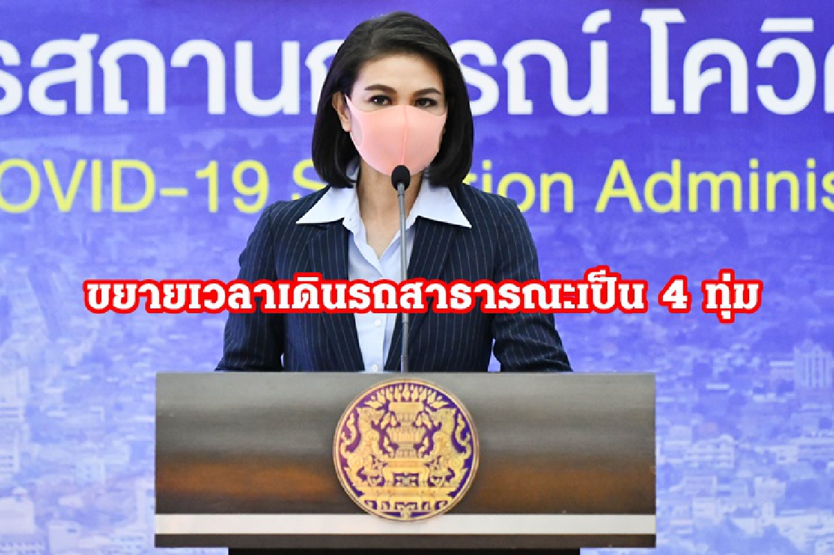 ศบค. ขยายเวลาเดินรถสาธารณะเป็น 4 ทุ่ม รองรับพนักงานห้าง-ร้านอาหารเลิกงาน เพื่อไม่ให้แออัด ลุ้นผ่อนมาตรการอีก 2 สัปดาห์