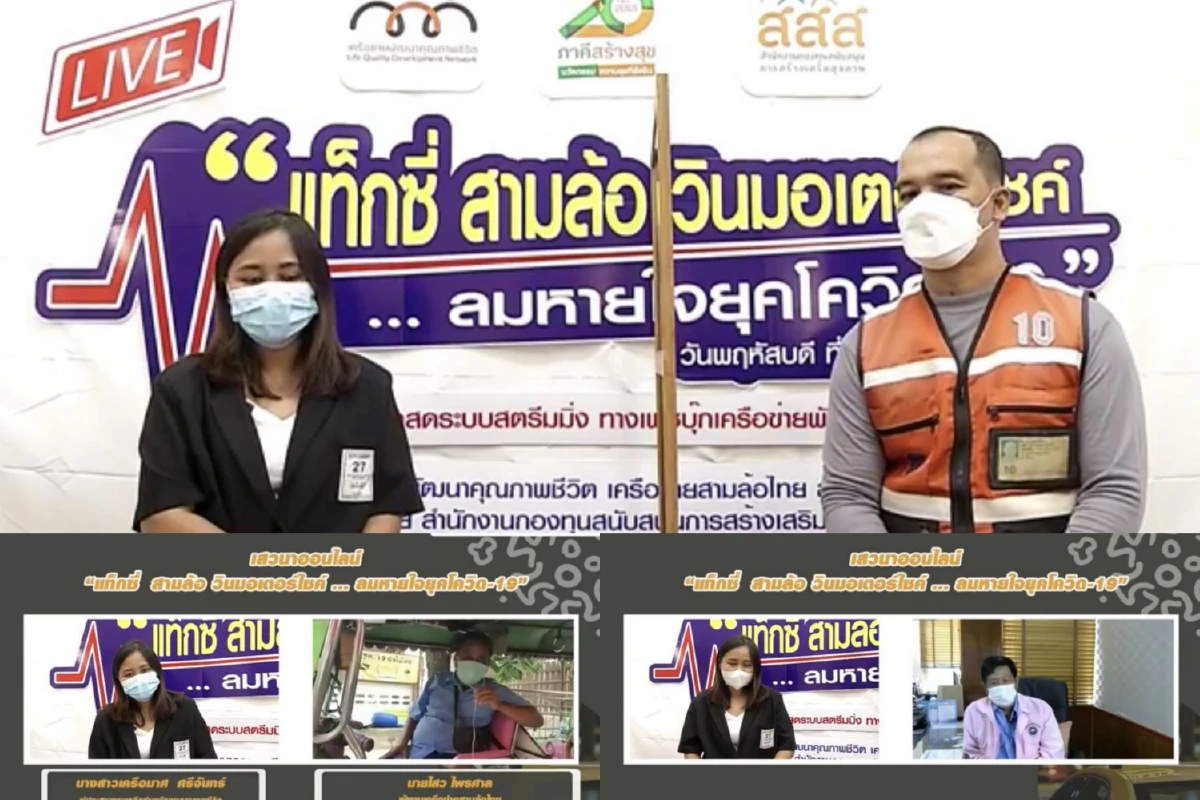 เครือข่ายพัฒนาคุณภาพชีวิต ร่วมกับ สำนักงานกองทุนสนับสนุนการสร้างเสริมสุขภาพ(สสส.) จัด เสวนาออนไลน์ “แท็กซี่ สามล้อ วินมอเตอร์ไซต์ ลมหายใจยุคโควิด-19” โดยนายวิฑูรย์ แนวพานิช ประธานมูลนิธิเพื่อคนขับรถแท็กซี่ นายไสว ไพรศาล ผู้แทนเครือข่ายสามล้อไทย นายวสันต์ ศรีมาก เครือข่ายวินมอไซค์ ขับขี่ปลอดภัยใจอาสา และศาสตราภิชาน แล ดิลกวิทยรัตน์ ที่ปรึกษาศูนย์พัฒนาแรงงานและการจัดการคณะเศรษฐศาสตร์ จุฬาลงกรณ์มหาวิทยาลัย ร่วมเสวนา