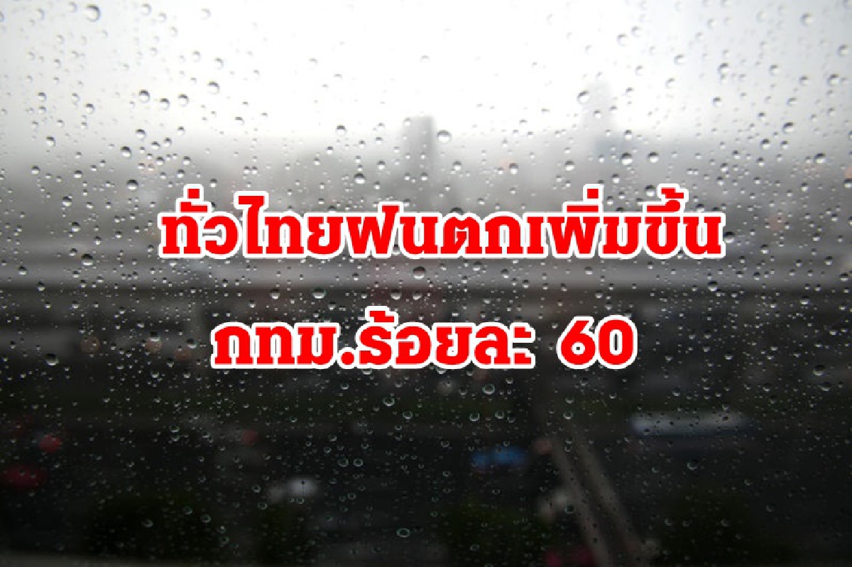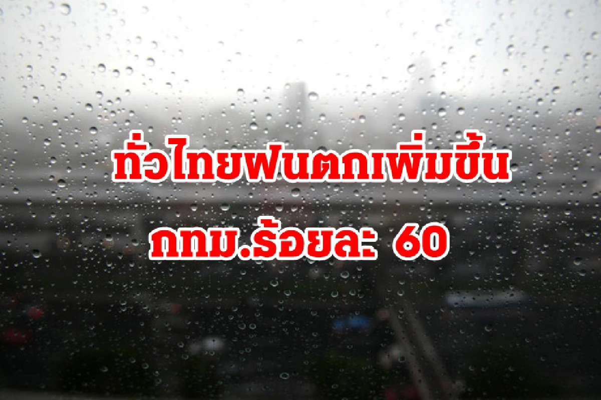 กรมอุตุฯ เผย ทั่วไทยมีฝนเพิ่มขึ้น ตกหนักบางแห่งบริเวณ ภาคอีสาน กลาง ตะวันออก ใต้ฝั่งตะวันตก ระวังเกิดน้ำท่วมฉับพลัน น้ำป่าไหลหลาก กทม.ปริมณฑลฟ้าคะนองร้อยละ60