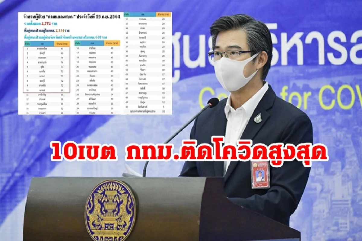 ศบค. เผย กทม.ยอดลด แต่ยังอันดับ 1 เปิด10เขตติดโควิดสูงสุด