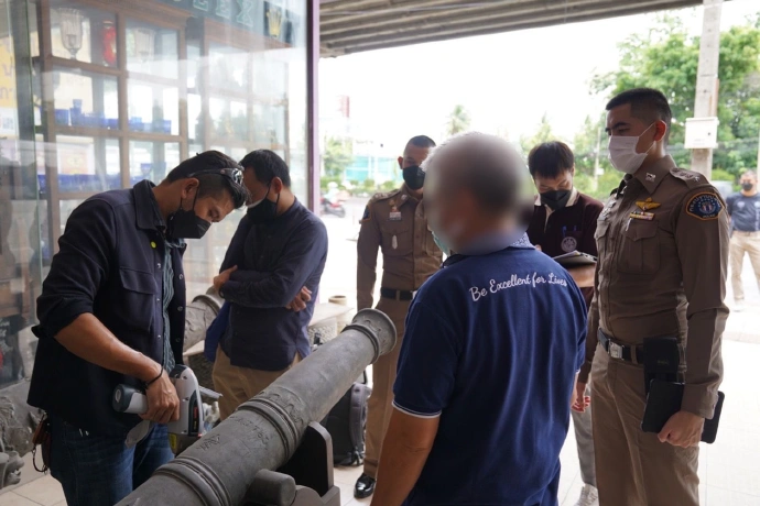 กองปราบปราม ร่วม กรมศิลปากร บุกค้นร้านค้าโบราณวัตถุ ยึดปืนใหญ่เทียม 7 กระบอก หลังได้รับแจ้งเบาะแสผ่านเฟซบุ๊กกองปราบปราม