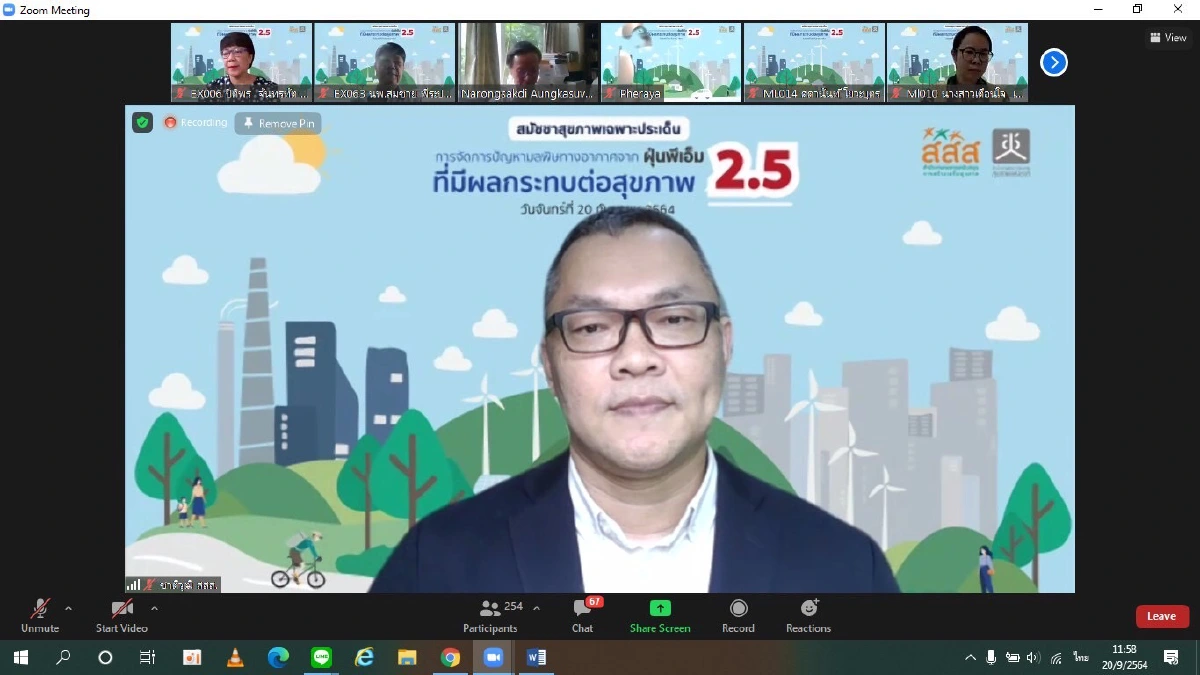 เมื่อวันที่ 20 กันยายน สำนักงานกองทุนสนับสนุนการสร้างเสริมสุขภาพ (สสส.) ร่วมกับ สำนักงานคณะกรรมการสุขภาพแห่งชาติ (สช.) และกรมควบคุมมลพิษ กระทรวงทรัพยากรธรรมชาติและสิ่งแวดล้อม (ทส.) จัดงาน “สมัชชาสุขภาพเฉพาะประเด็น ว่าด้วย การจัดการปัญหามลพิษทางอากาศจากฝุ่นพีเอ็ม 2.5 ที่มีผลกระทบต่อสุขภาพ” โดยมี ผู้แทนจากภาคส่วนต่างๆ ทั้งภาคราชการ ภาคการเมือง ภาควิชาการ ภาควิชาชีพ ภาคการศึกษา ภาคประชาสังคม และภาคเอกชน เข้าร่วมงานกว่า 400 คน