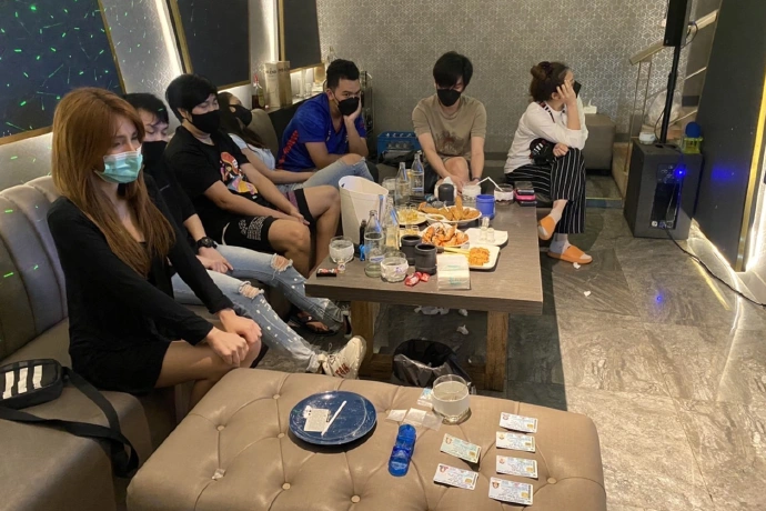 เบื้องต้นเจ้าที่ได้แจ้งข้อหา“ร่วมกันมียาเสพติดไว้ในความครอบครองเพื่อจำหน่าย ,ร่วมกันชุมนุม ทำกิจกรรม หรือมั่วสุมกัน ณ ที่ใดใด ในสถานที่ แออัดหรือกระทำการดังกล่าว อันเป็นการยุยง ให้เกิดความไม่สงบเรียบร้อย หรือในลักษณะที่เสี่ยงต่อการแพร่เชื้อโรค,ร่วมกันฝ่าฝืน ข้อกำหนดห้ามออกนอกเคหสถานตามเวลา ที่กำหนด อันเป็นการฝ่าฝืน พ.ร.ก.ฉุกเฉิน และกระทำการหรือดำเนินการใดใดซึ่งอาจก่อ สภาวะที่ไม่ถูกสุขลักษณะซึ่งอาจเป็นเหตุให้โรคติดต่ออันตรายหรือโรคแพร่ระบาดออกไป ฝ่าฝืนหรือไม่ปฏิบัติตามคำสั่งของเจ้าพนักงาน ควบคุมโรคติดต่อ ตาม พ.ร.บ.โรคติดต่อ พ.ศ.2558” และเตรียมเรียกเจ้าของโรงแรมมาแจ้งข้อหาจัดตั้งประกอบกิจการ สถานบริการโดยไม่รับอนุญาต นำตัวส่งพนักงานสอบสวนสน.โคกคราม ดำเนินคดีตามกฎหมายต่อไป