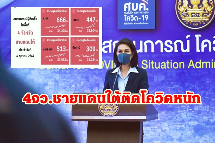 ศบค. รายงาน ไทยติดโควิดอันดับที่ 28 ของโลก พบผู้ติดเชื้อรายใหม่ 9,866 ราย เสียชีวิต 102 ราย เผย 4 จังหวัดชายแดนใต้สถานการณ์การแพร่ระบาด ยังหนัก สงขลาไต่ขึ้นอันดับ 2 ยอด 666 รายลุ้น อีก 2 สัปดาห์คลายล็อกเพิ่ม