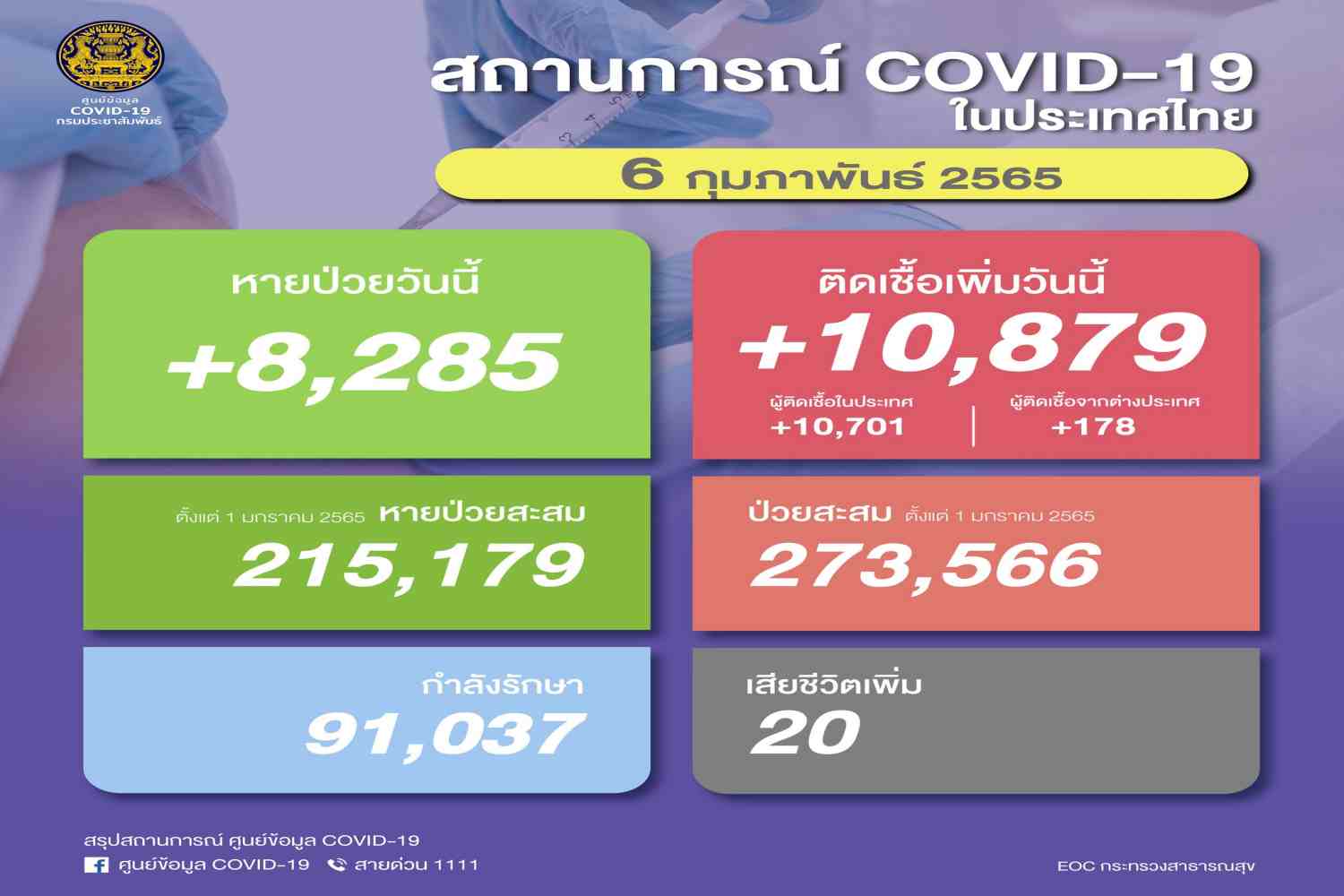 เมื่อวันที่ 6 ก.พ. 65 ศูนย์บริหารสถานการณ์โควิด-19 รายงานสถานการณ์โควิดประจำวัน ดังนี้