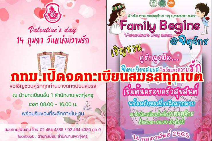 วาเลนไทน์ปีนี้ กทม.เปิดจดทะเบียนสมรสทุกเขต