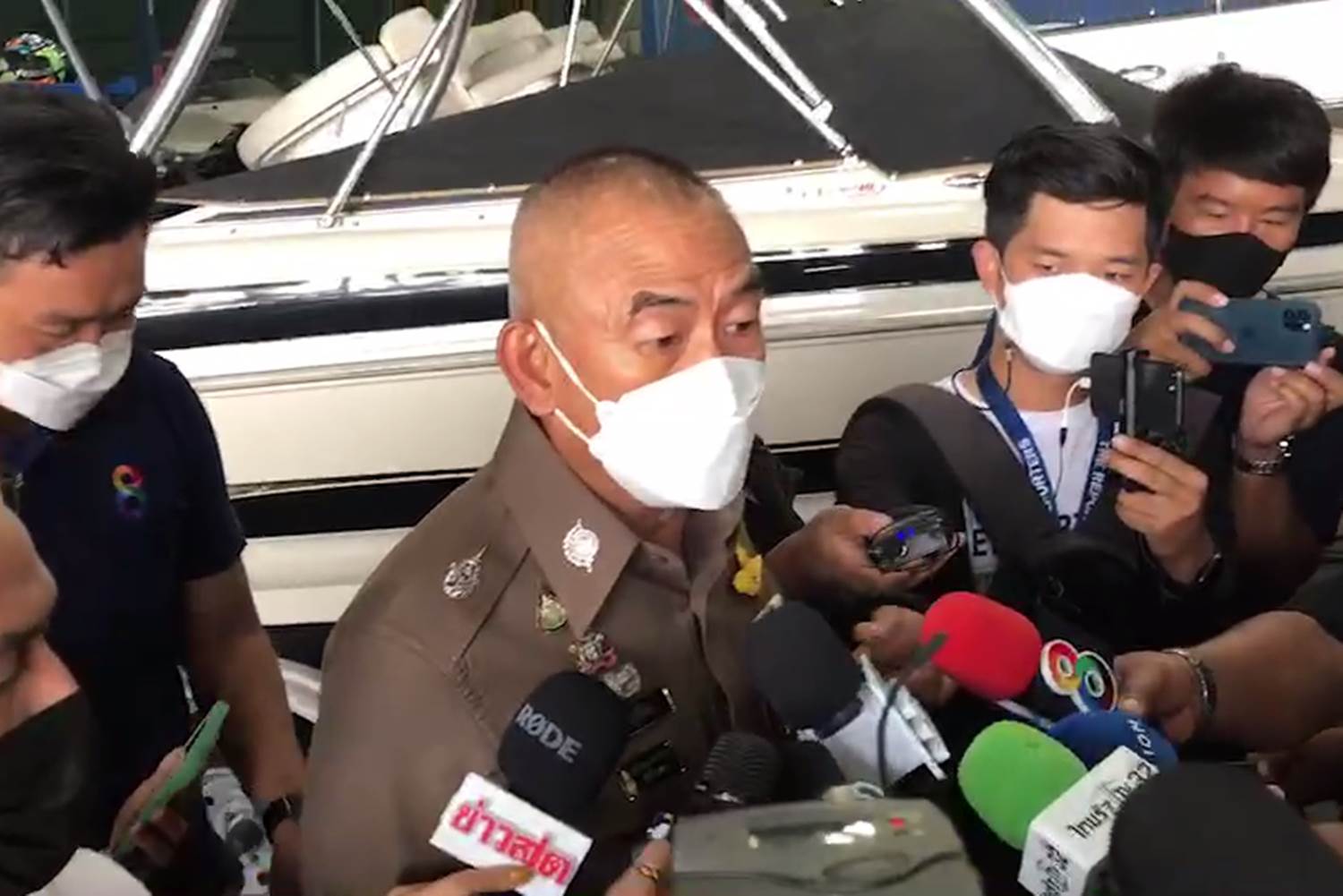 ส่วนเรื่องเสียงปริศนาที่แทรกเข้ามาในคลิปว่า “เอาเพื่อนมานี่” เพิ่งได้รับแจ้งและจะประสานตำรวจผู้เชี่ยวชาญถอดคลิปเสียงไปตรวจสอบ โดยขณะนี้ยังไม่มีการตั้งประเด็นว่าเป็นคดีฆาตกรรมหรืออุบัติเหตุ ผบ.ตร. ได้กำชับให้ทำคดีอย่างละเอียดรอบคอบทุกมิติ วันนี้ตำรวจจึงต้องนำเรือของจริงจำลองเหตุการณ์