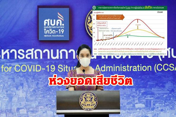 - แนวโน้มสถานการณ์ในประเทศพบว่าผู้ป่วยปอดอักเสบยังเพิ่มขึ้นอย่างช้าๆ และมีผู้ป่วย 1 ใน 3 ของจำนวนผู้ป่วยปอดอักเสบใส่เครื่องช่วยหายใจ ขณะที่ยอดผู้เสียชีวิตมีแนวโน้มสูงขึ้นอย่างชัดเจน วันนี้ยอด 74 ราย ถือเป็นนิวไฮ การคาดการณ์การเสียชีวิตของประเทศไทย ทิศทางยังสูงขึ้นเรื่อยๆ สูงกว่าเส้นคาดการณ์ทั้ง 3 เส้น สูงกว่าเส้นคาดการณ์ที่แย่ที่สุด การระบาดรอบล่าสุดอัตราผู้เสียชีวิตอยู่ที่ 0.20% ของผู้ติดเชื้อ ส่วนผู้ติดเชื้อรายวันมีแนวโน้มเพิ่มขึ้นแบบทรงตัว จึงขอเตือนให้ระมัดระวังเพิ่มขึ้น นอกจากนี้ ขอให้มีการนำผู้มีความเสี่ยง โดยเฉพาะกลุ่มผู้สูงอายุและโรคเรื้อรังไปรับวัคซีนเข็มที่ 1 2 และ 3 โดยคนที่ฉีดวัคซีนครบ 2 เข็มเกิน 3 เดือน ขอให้มารับวัคซีนเข็มกระตุ้นได้เลย