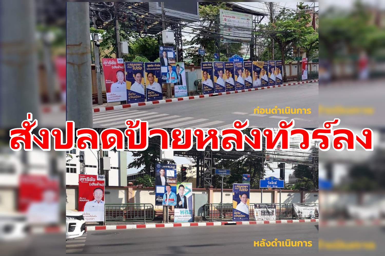 "พล.ต.อ.อัศวิน" สั่งปลดป้ายหาเสียง บริเวณแยกวัดสิงห์ เขตจอมทอง เหลือเพียงป้ายเดียว หลังก่อนหน้านี้ทีมงานติดถี่จนประชาชนวิจารณ์