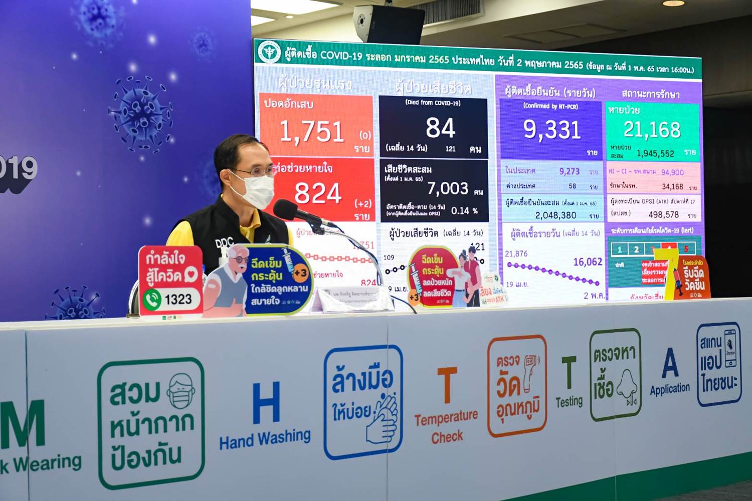 เมื่อวันที่ 2 พ.ค. 65 นพ.จักรรัฐ พิทยาวงศ์อานนท์ ผู้อำนวยการกองระบาดวิทยา กรมควบคุมโรค แถลงสถานการณ์โรคโควิด 19 ว่า วันนี้ประเทศไทยมีรายงานผู้ติดเชื้อ 9,331 ราย ลดลงจากหลายสัปดาห์ก่อนที่มีผู้ติดเชื้อวันละประมาณ 2 หมื่นราย ผู้ป่วยปอดอักเสบและใส่ท่อช่วยหายใจมีแนวโน้มลดลง