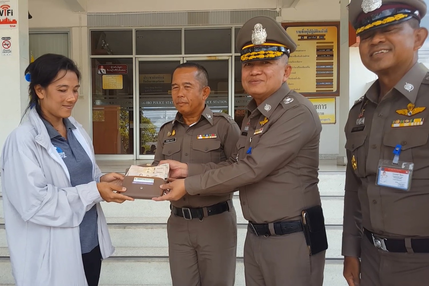 ดาบตำรวจน้ำดีเก็บกระเป๋าสตางค์ตกริมถนนคืนเจ้าของ หญิงสุดดีใจจะนำเงินไปใช้หนี้ธกส.