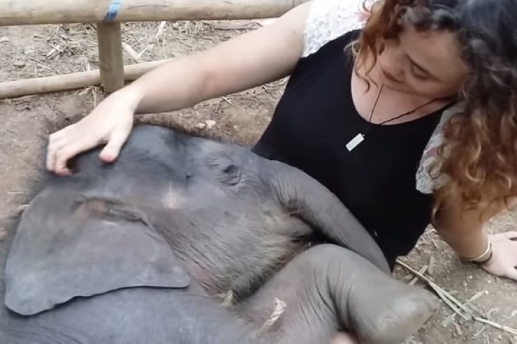 คลิปสุดน่ารัก แหม่มสาวร้องเพลงกล่อมลูกช้างวัย 3 สัปดาห์จนหลับคาตัก