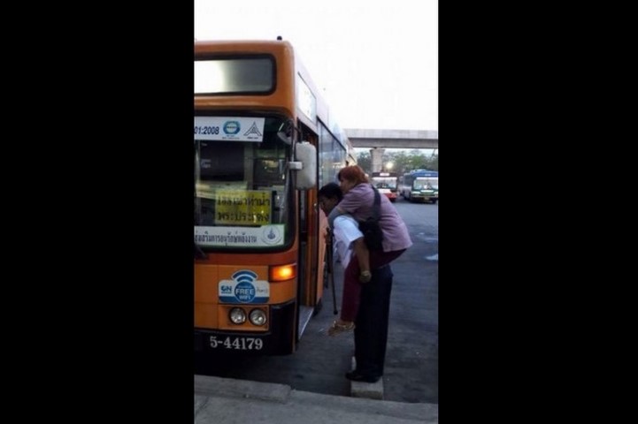 น้ำใจงาม!นายท่ารถเมล์สาย138แบกสาวขาไม่ดีขึ้นรถ