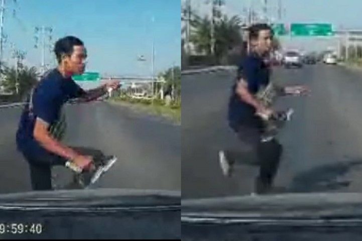 โลกออนไลน์วิจารณ์คลิปจากกล้องหน้ารถ นาทีหนุ่มกระโดดเข้าใส่รถยนต์กลางถนน