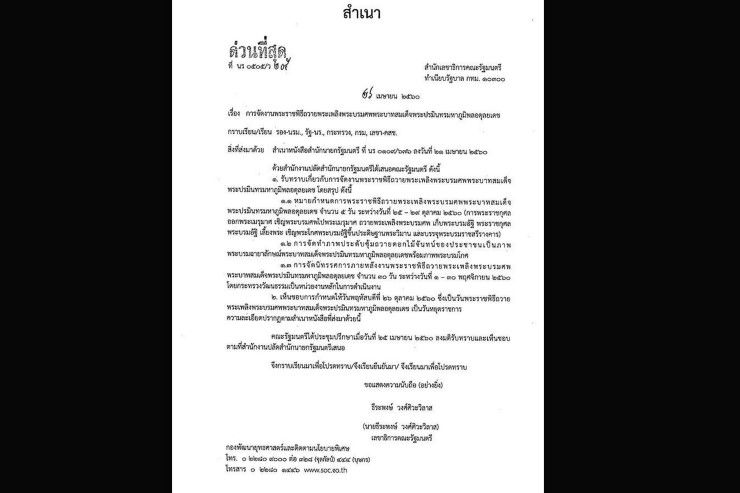 สำนักเลขาธิการคณะรัฐมนตรี แจงหยุด 5 วัน พิธีถวายพระเพลิงพระบรมศพฯ ไม่เป็นความจริง มีเพียง 26 ต.ค.วันเดียว