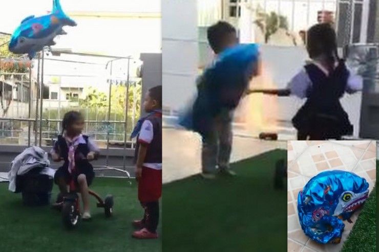 ระวังภัยใกล้ตัว! ลูกโป่งอัดแก๊สระเบิดขณะเด็กกำลังวิ่งเล่น