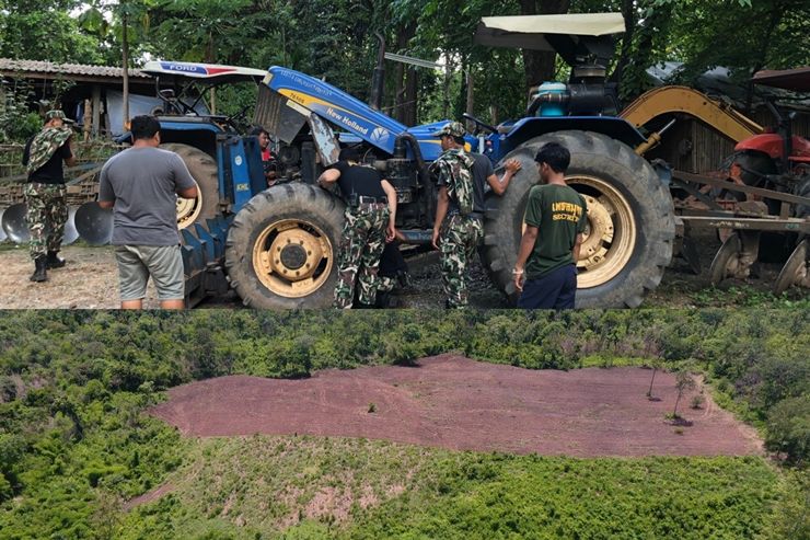 กาญจนบุรี-ชุดพญาเสือลุยจับรถไถ3คันแอบบุกรุกป่าเปิดพื้นที่อุทยานแห่งชาติเขื่อนศรีนครินทร์กว่า 50 ไร่