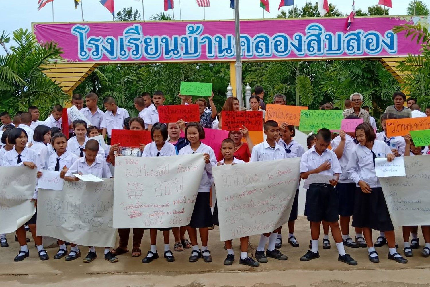 อย่างไรก็ตาม บริเวณหน้าอาคารเรียนของโรงเรียน มีผู้ปกครอง และในโรงเรียน มาถือป้ายขับไล่ ผอ.พร้อมป้ายข้อความต่างๆ เป็นจำนวนมาก โดยกลุ่มผู้ประท้วง ต้องการให้ย้าย ผอ.ออกไปจากโรงเรียนแห่งนี้