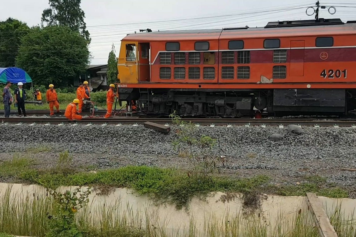 รถไฟขนหินตกรางที่สถานีชุมทางบัวใหญ่ได้รับการแก้ไขแล้ว