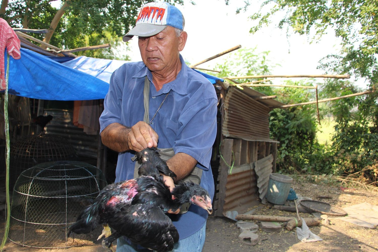 นายสมศักดิ์ ได้เล่าให้ฟังอีกว่า ลูกชายซื้อพันธุ์ไก่ชน สายพันธุ์เมียนมา และสายพันธุ์อื่นๆมาให้เลี้ยงเพื่อเพาะพันธุ์ขายกว่า 50 ตัว เนื่องจากเป็นคนพิการขา ไปไหนมาไหนไม่สะดวก โดยเลี้ยงในเล้าและในสุ่ม พร้อมกับซื้ออาหารให้กิน ไม่ได้ปล่อยเลี้ยงเหมือนไก่ทั่วไป และเมื่อปี พ.ศ.2560 ถูกสุนัขแอบเข้ากัดไก่ตายไป 28 ตัว ซึ่งรวมมูลค่าความเสียหายในครั้งนั้นกว่า 170,000 บาท