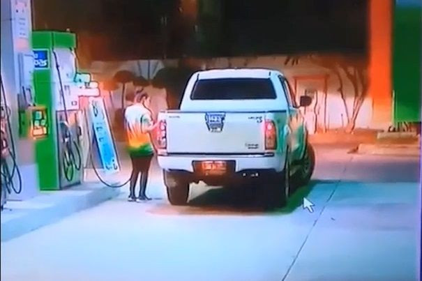 น.ส.อรอุมา ชุราตะโก อายุ 35 ปี พนักงานเล่าวว่า คนขับเป็นชายวัยรุ่น เข้ามาจอดรถในลักษณะทแยงเหมือนเตรียมพร้อมจะขับออกไป โดยบอกให้เติมเต็มถัง เมื่อใกล้เสร็จก็เดินไปหยิบน้ำดื่มมา 4 ขวดเพื่อนำไปให้กับคนขับแต่ปรากฏว่าเมื่อปิดฝาถังคนขับก็รีบขับออกไปอย่างรวดเร็ว และเกือบจะไปชนป้ายหน้าปั้ม แม้จะพยายามตะโกนบอกยามและเพื่อนที่อยู่ด้วยกันรวม3คนแต่ก็ไม่ทันรถกระบะคันนี้ขับหนีหายไปทันที
