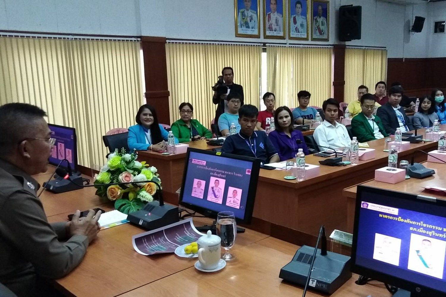 เมื่อวันที่ 23 ม.ค.ที่ห้องประชุมเกียรติศักดิ์รักษ์วินัย ชั้น 3 อาคาร ภ.จว.สุรินทร์ พล ต.ต.ถวาย บูรณรักษ์ ผู้บังคับการตำรวจภูธรจังหวัดสุรินทร์ได้เรียกเจ้าของสถานประกอบการธนาคาร ร้านทอง และร้านสะดวกซื้อที่เปิดบริการ 24 ชม.ในจ.สุรินทร์มาร่วมประชุม ปรึกษาหารือ และแลกเปลี่ยนความคิดเห็นเพื่อหาแนวทางการป้องกันการโจรกรรม และการก่ออาชญากรรมซึ่งอาจจะเกิดขึ้นได้ทุกเมื่อ ในช่วงสังคมปัจจุบัน หลังเกิดเหตุการณ์ผอ.กอล์ฟโจรจี้ชิงทอง