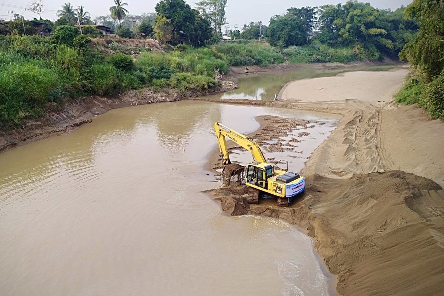 สุโขทัย-จิตอาสาลงพื้นที่ขุดลอกแม่น้ำน้ำยมที่ตื้นเขิน พร้อมติดตั้งระบบประปาดึงน้ำให้ประชาชนใช้อุปโภคบริโภคบรรเทาปัญหาภัยแล้ง