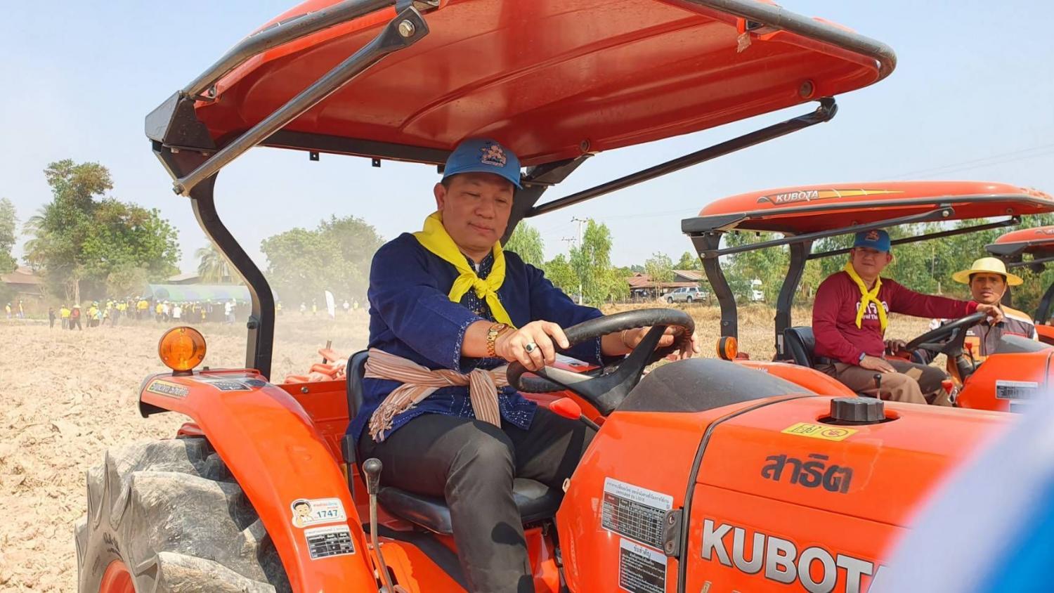 พ่อเมืองอุดรโชว์ขับรถไถกลบตอซังข้าวนำรณรงค์เลิกเผาหลังฤดูเก็บเกี่ยว