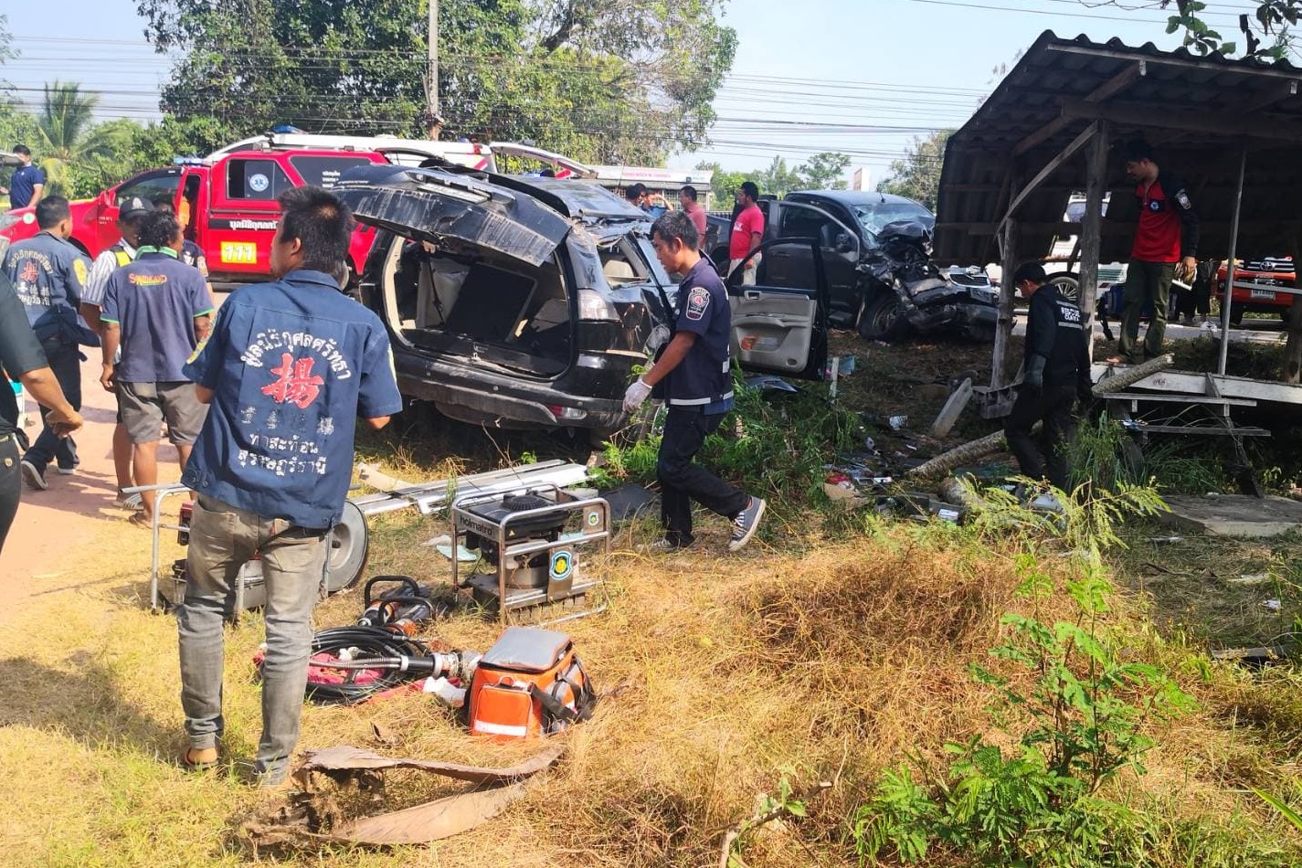 สุราษฎร์ธานี-รถแวนเสียหลักตกขอบถนนชนประสานงากระบะ ตายยกครัว5ศพ เผยกลับจากทำบุญวันมาฆบูชา อีก 10 กิโลเมตรถึงบ้าน