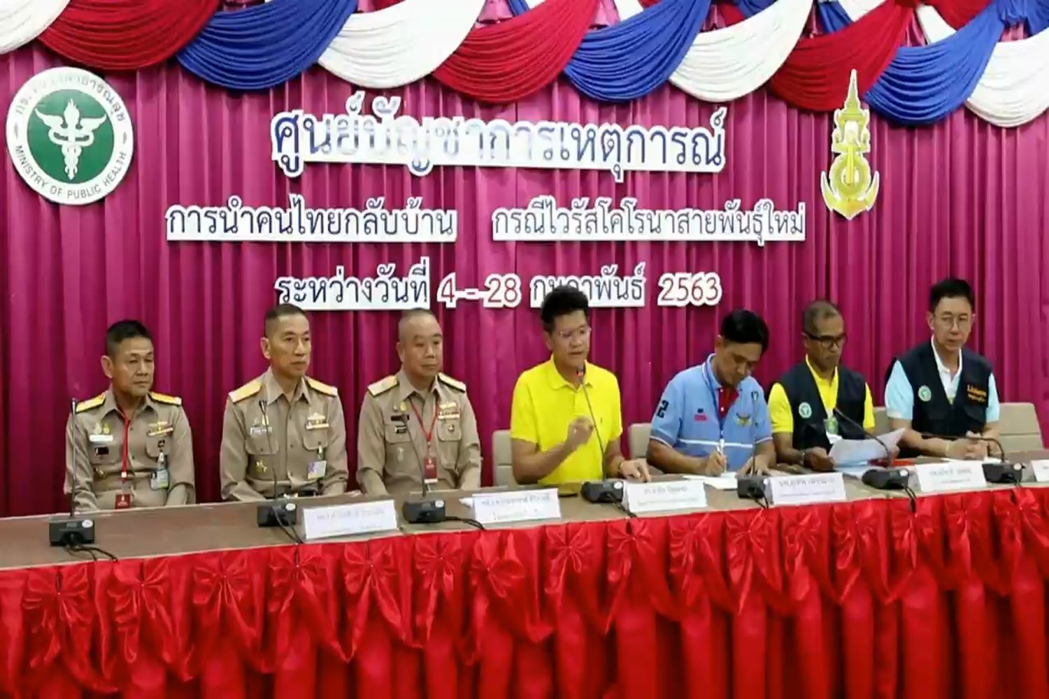 เมื่อวันที่ 9 ก.พ.ที่ศูนย์บัญชาการเหตุการณ์ การนำคนไทยกลับบ้านโรงพยาบาลอาภากรเกียรติวงศ์ ฐานทัพเรือสัตหีบ จ.ชลบุรี นายสาธิต ปิตุเตชะ รมช.สาธารณสุข พล.ร.ท.ประชาชาติ ศิริสวัสดิ์ โฆษกกองทัพเรือ นพ.สุเทพ เพชรมาก ผู้ตรวจราชการกระทรวงสาธารณสุข พล.ร.ต.เกิดศักดิ์ วีระโยธิน ผอ.รพ.สมเด็จพระนางเจ้าสิริกิติ์ กรมแพทย์ทหารเรือ พร้อมคณะแพทย์และเจ้าหน้าที่ รวมแถลงข่าวผลความคืบหน้าของอาการคนไทยที่พักฟื้นเก็บตัว