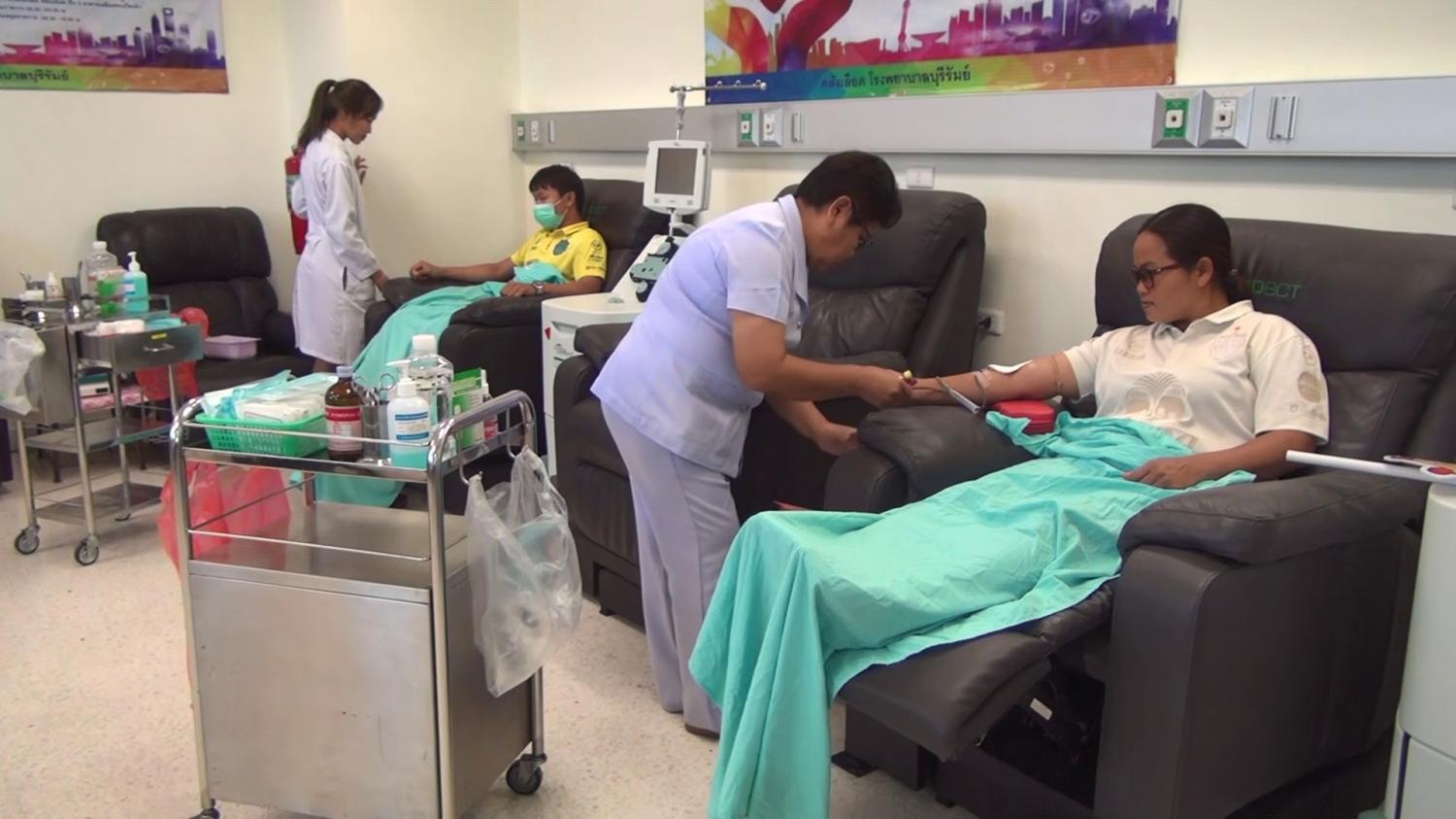 เมื่อวันที่ 9 ก.พ.บรรยากาศที่คลังเลือด ชั้น 5 อาคารเฉลิมพระเกียรติฯ รพ.บุรีรัมย์ ซึ่งได้เปิดรับบริจาคโลหิตในกรณีฉุกเฉินตั้งแต่เมื่อคืนที่ผ่านมา จนถึงช่วงบ่ายวันนี้ ก็ได้มีทั้งข้าราชการ ประชาชน และนักศึกษาทยอยเข้าไปแสดงความจำนงบริจาคโลหิตอย่างต่อเนื่อง เพื่อนำไปช่วยเหลือผู้ได้รับบาดเจ็บจากเหตุการณ์ทหารคลั่งใช้อาวุธปืนสงครามกราดยิง ที่ห้างเทอร์มินอล 21 กลางเมืองนครราชสีมาทำให้มีผู้เสียชีวิตและบาดเจ็บจำนวนมาก