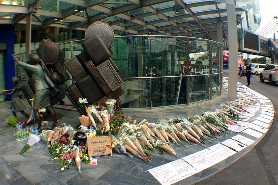 ประชาชนจำนวนมากนำดอกไม้มาวางไว้บริเวณหน้าศูนย์การค้าเทอร์มินอล21โคราช พร้อมเขียนข้อความแสดงความอาลัยผู้เสียชีวิตจากเหตุกราดยิง