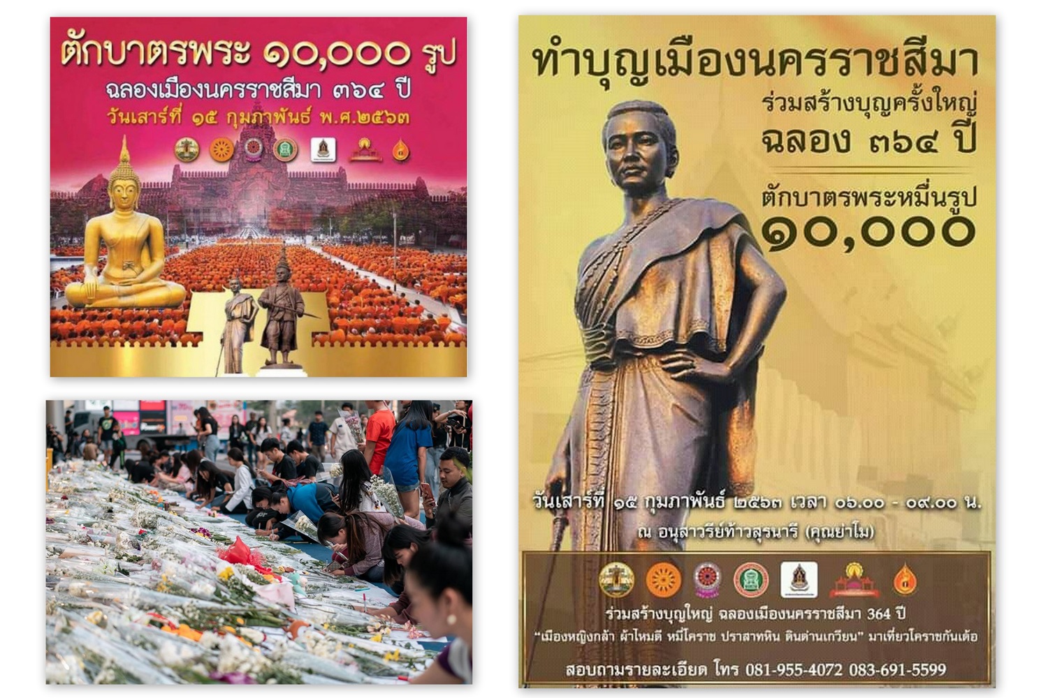 นครราชสีมา – โคราชจัดทำบุญใหญ่ 13ก.พ.ที่ศูนย์การค้าเทอมินอล 21/ ลานย่าโม 15ก.พ.ตักบาตรพระสงฆ์10,000รูป / สวดนพเคราะห์อุทิศส่วนกุศล 16ก.พ.63 วัดป่าศรัทธารวม
