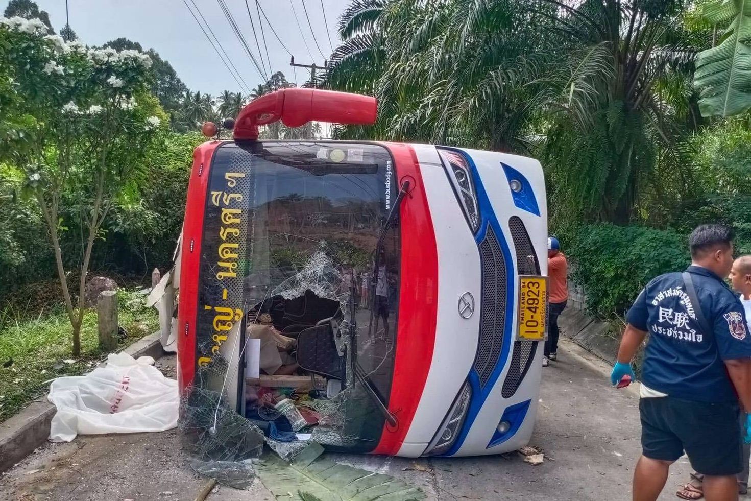 สมาคมไหหลำหาดใหญ่เหมามินิบัสขึ้นเนินเทวดา นครศรีธรรมราช เครื่องหมดแรงกลางทางทำรถสไลด์ตกเนินพลิกคว่ำเสียชีวิต2 บาดเจ็บ 18