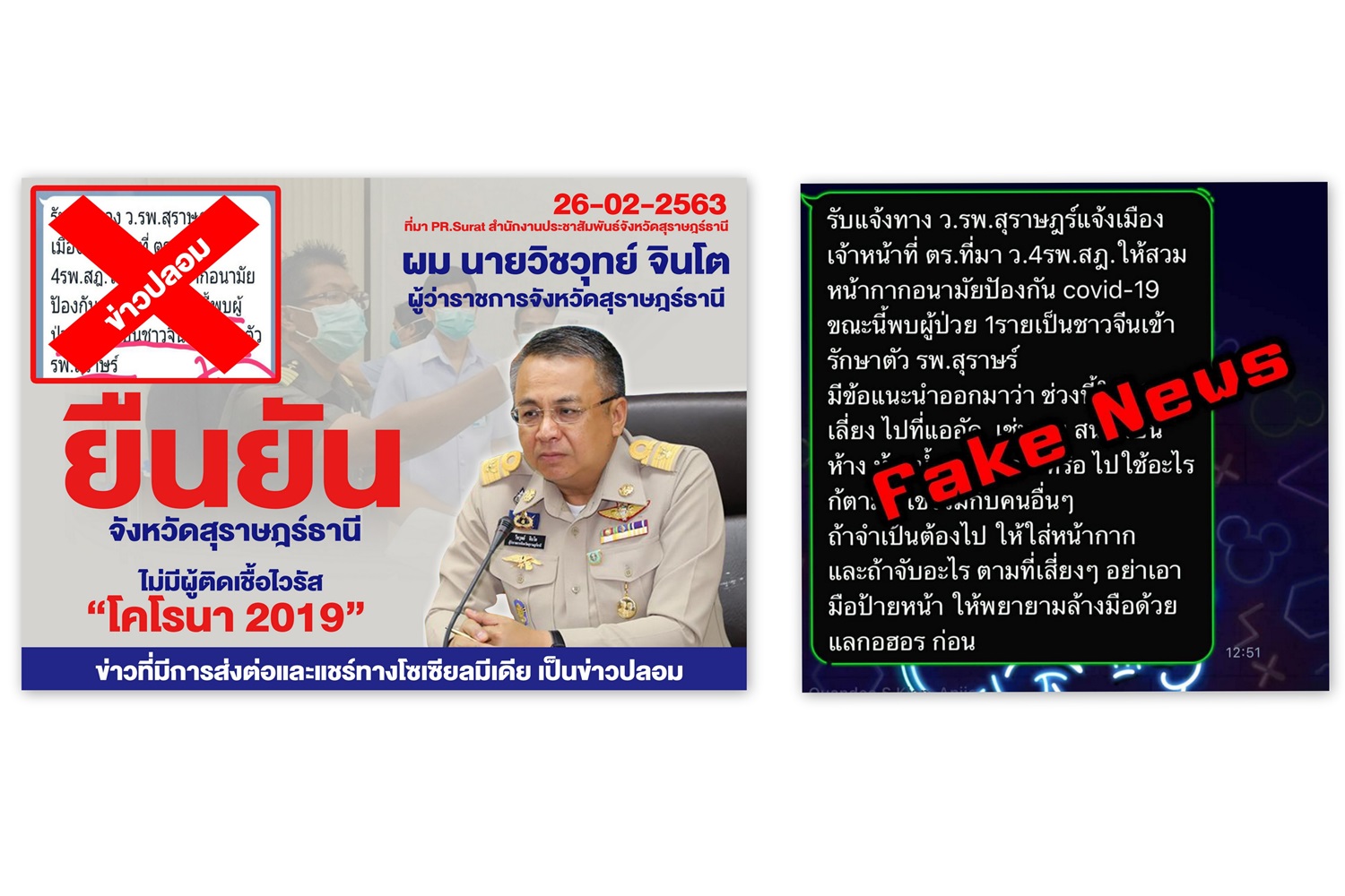 เมื่อวันที่ 27 ก.พ.63 มีผู้ตั้งกระทู้สอบถามในเฟสบุ๊กสุราษฎร์ธานี ข้อความว่า "ตำรวจที่มาปฏิบัติหน้าที่โรงพยาบาลสุราษฎร์ธานีให้สวมหน้ากากอนามัยป้องกันcovid-19ขณะนี้พบผู้ป่วย 1 รายเป็นชาวจีนเข้ารักษาตัวเป็นจริงหรือไม่" ซึ่งปรากฏคนอ่านไม่เข้าใจตีความว่า "มีผู้ติดเชื้อไวรัสโคโรนา2019หรือโควิด19ป่วยในโรงพยาบาล"และส่งต่อข้อความเกิดความแตกตื่นกันวุ่นวาย