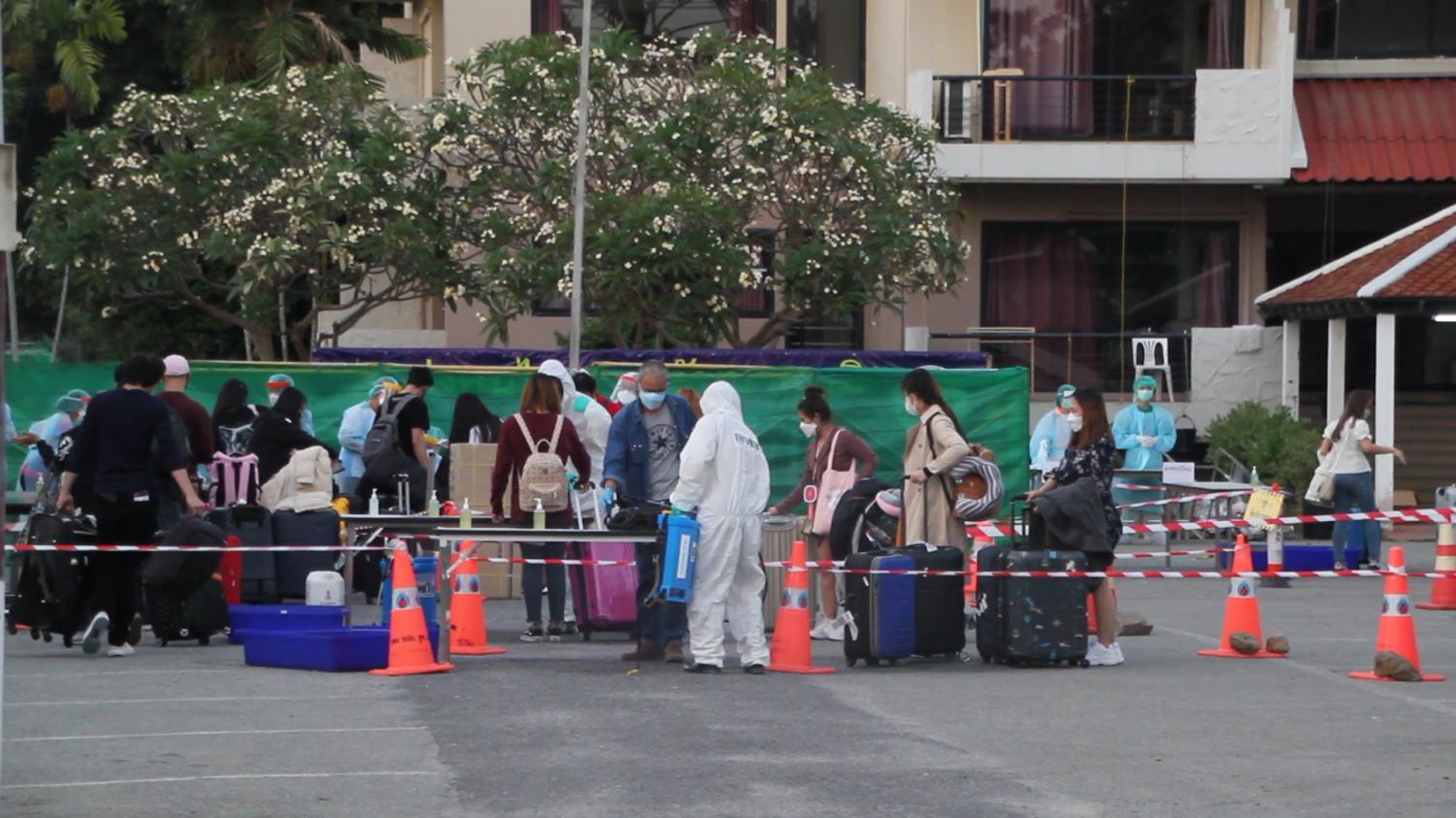 เมื่อเย็นวันที่ 10 มี.ค.ที่อาคารรับรอง กองเรือยุทธการ ฐานทัพ เรือสัตหีบ จ.ชลบุรี รถบัสโดยสาร 2 ชั้น จำนวน 3 คันบรรทุกผู้โดยสารซึ่งเป็นกลุ่มคนไทยที่เดินทางกลับจากประเทศเกาหลีใต้ล็อตใหม่จำนวน 54 ราย ที่ผ่านการคัดกรองจากกระทรวงสาธารณสุข ที่สนามบินสุวรรณภูมิ เดินทางมายังอาคารศูนย์เฝ้าระวัง ฐานทัพเรือสัตหีบ เพื่อพำนักเฝ้าดูอาการเป็นเวลา 14 วัน